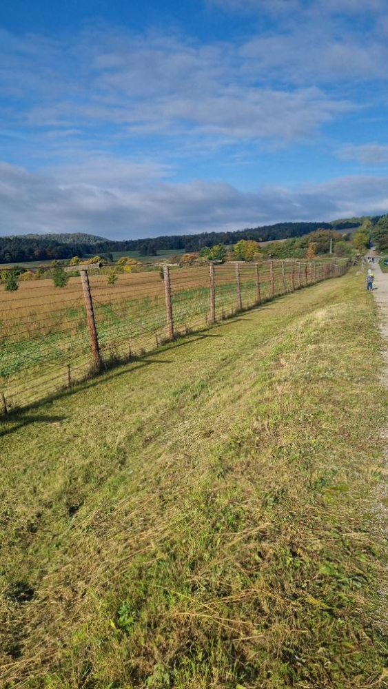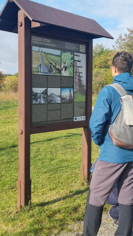 Před nimi se táhnou dva pásy nízkého plotu z ostnatého drátu upnutého na dřevěných sloupech s elektrickými vodiči. Na první pohled připomínají koncentrační tábor. Kdokoli se za bývalého režimu tohoto plotu dotkl, člověk, pták nebo zvíře, spustil poplach na velitelství roty Pohraniční stráže. Ještě do šedesátých let 20. století navíc skrze tyto dráty vedla elektřina se smrtelně nebezpečným napětím.