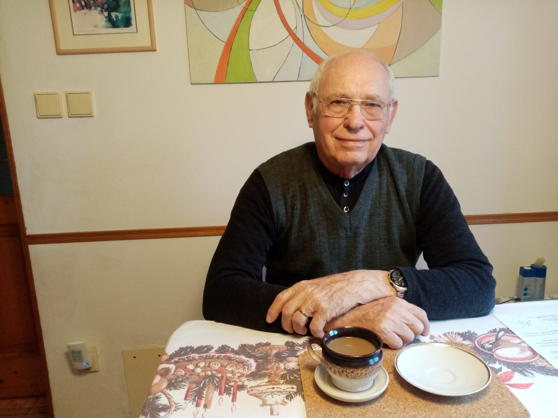 Mít tu čest zažít návštěvu u manželů Schwarzbachových z Miroslavi je za odměnu. Pan Erik letos oslaví devadesátiny a je v neskutečné fyzické i psychické kondici. Stále pracuje a překládá, loni mimo jiné pamětní knihu o Miroslavi, jejíž text byl napsán ještě před druhou světovou válkou německy takzvaným kurentem. Žije s manželkou Mílou na kraji města v domě jejích rodičů, kde jsme se sešli. Už samotný příběh jejich manželství by vydal na román. Původně jsem si chtěla povídat pouze s panem Erikem, ale nakonec se stala součástí následujícího rozhovoru i paní Míla, byť v menší míře, dokonale se doplňují.