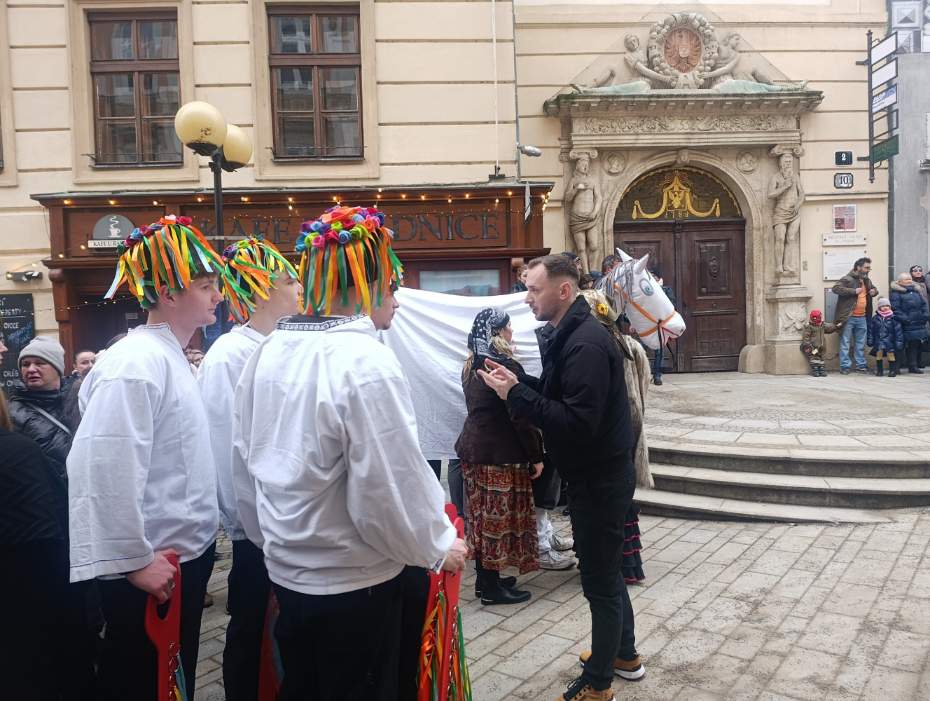 J. Frýdek: Je to strašná výzva, je to náročné, ale jsem rád, že ve Znojmě vůbec něco takového probíhá. Že ta tradice je tady pořád živá, že se při tom lidé setkávají, že je veselo a zábava, takový ten správný kreativní chaos. Moc se mi líbí, že naše škola takhle do toho jde. Přál bych si, aby se i znojemské podniky – podobně jako naše škola – více zapojovaly do udržování této tradice a umožnily masopustu návštěvu svých provozoven. Každým rokem je totiž stále náročnější najít majitele, kteří jsou ochotni masopust aktivně podpořit.
