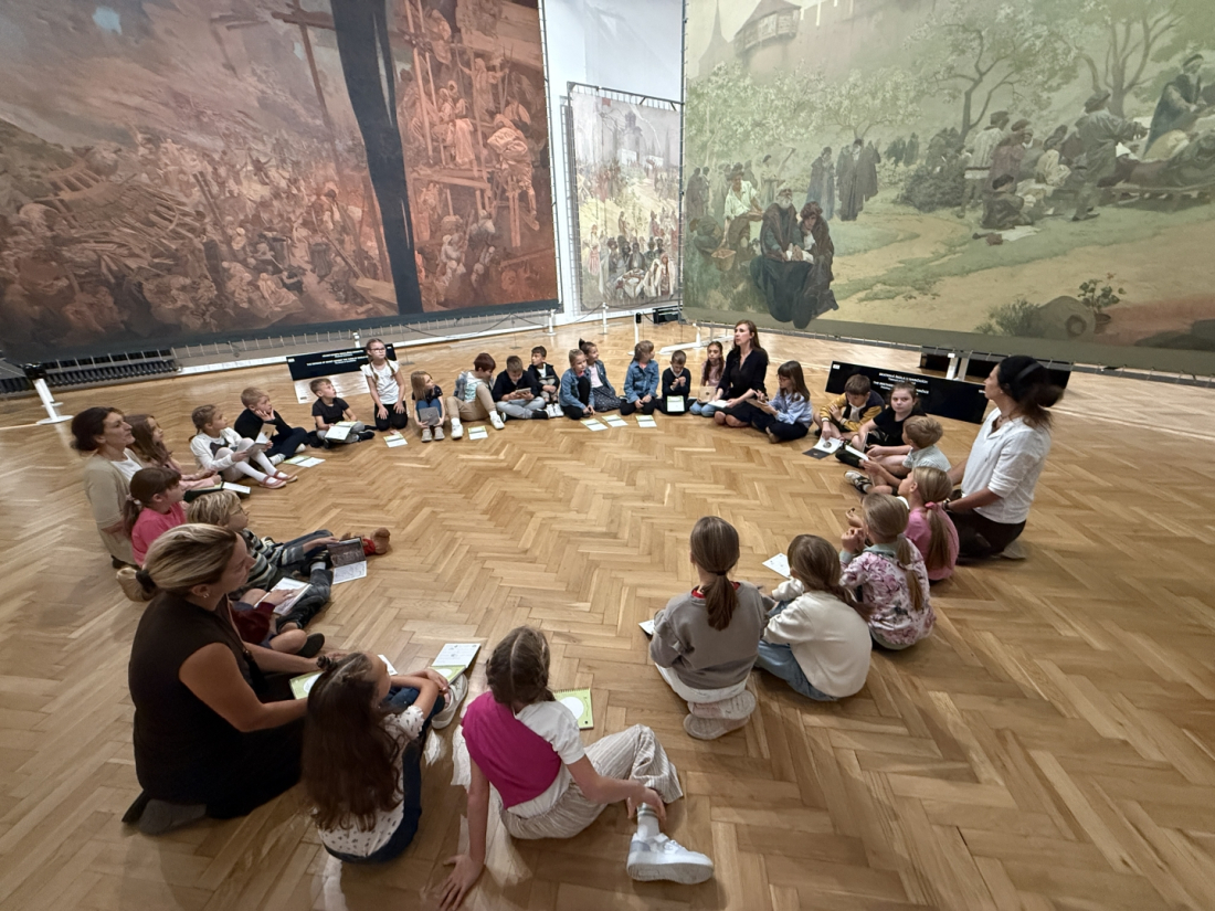 „Booklet nazvaný Jeeeeeeej Epopeeej! je to tak trochu knížka, tak trochu skicák, ale i tak trochu sešit, se kterým děti pracují a hrají si po celou dobu prohlídky Slovanské epopeje,“ vysvětluje jedna z autorek, ilustrátorka Dagmar Skokanová. Nejsou to jen omalovánky, ale kniha, která dětem nabízí různé úkoly, jako je čtení, psaní, počítání, zkoumání a tvoření. A to vše přímo v galerii. Jejím cílem je probudit v dětech radost z poznávání a objevování a ukázat jim, že spousta věcí se dá dělat i offline – bez mobilu a bez počítače.