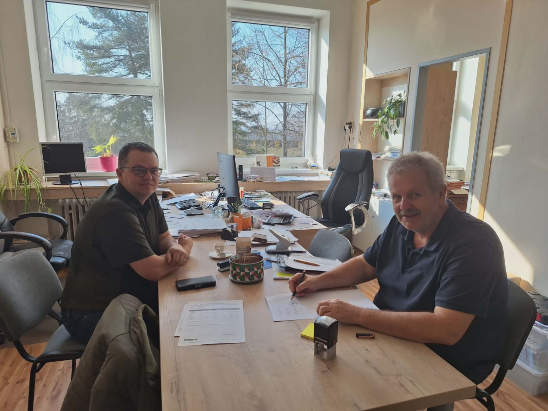 Starosta Božic Jiří Čada se starostou Velkého Karlova Bronislavem Prudkým při podpisu memoranda.