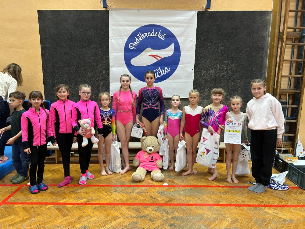 Podobně se z bronzové medaile v této speciální disciplíně pořádajícího gymnastického klubu Sokola Poděbrady mohla radovat i Karolínka Čučková, když výkonem 4,88 s koukala na záda pouze dvěma závodnicím z Kolína z padesátičlenného startovního pole. Že máme ve Znojmě opravdu velké hvězdy svědčí i umístění dalších znojemských závodnic: 9. m. si vyhvězdovala Emilie Kocourková, 10. Růžena Kubošná, 13. Linda Sedláčková a 41. Ema Němcová. V hlavním závodě si pak tato děvčata pořadí trochu promíchala: do TOP 10 závodnic nar. 2018 se na 8. příčku probojovala Růžena Kubošná, sestra naší úspěšné české reprezentantky Veroniky Kubošné. Velmi pěkné umístění vybojovala 13. Karolína Čučková, 20. Emilie Kocourková a 35. Linda Sedláčková. Na 45. místě skončila nejmladší ze startovního pole Ema Němcová, jejíž starší sestra Sofie Němcová (9. m.)naopak velmi dobře zúročila své závodní zkušenosti a probojovala se do TOP 10 závodnic kategorie 2013-2014. Za svou sestavu na bradlech obdržela nejvyšší známku celého startovního pole 10,775 b. Škoda, že trochu foukalo na kladině. Bohužel i v případě Gabriely Emmy Kroupové, která se pro tentokrát musí spokojit s 28. místem ve víceboji. Nicméně, že i ona patří mezi hvězdy, potvrdila ve speciální disciplíně hvězdování, kde se výkonem 4,36 s. probojovala na bronzový stupínek vítězů.