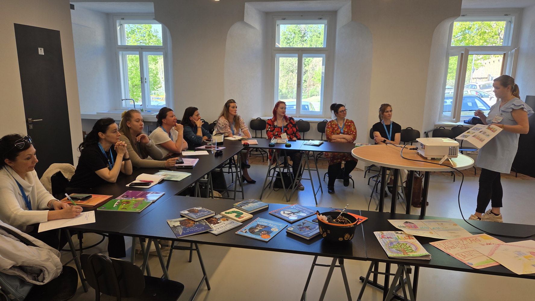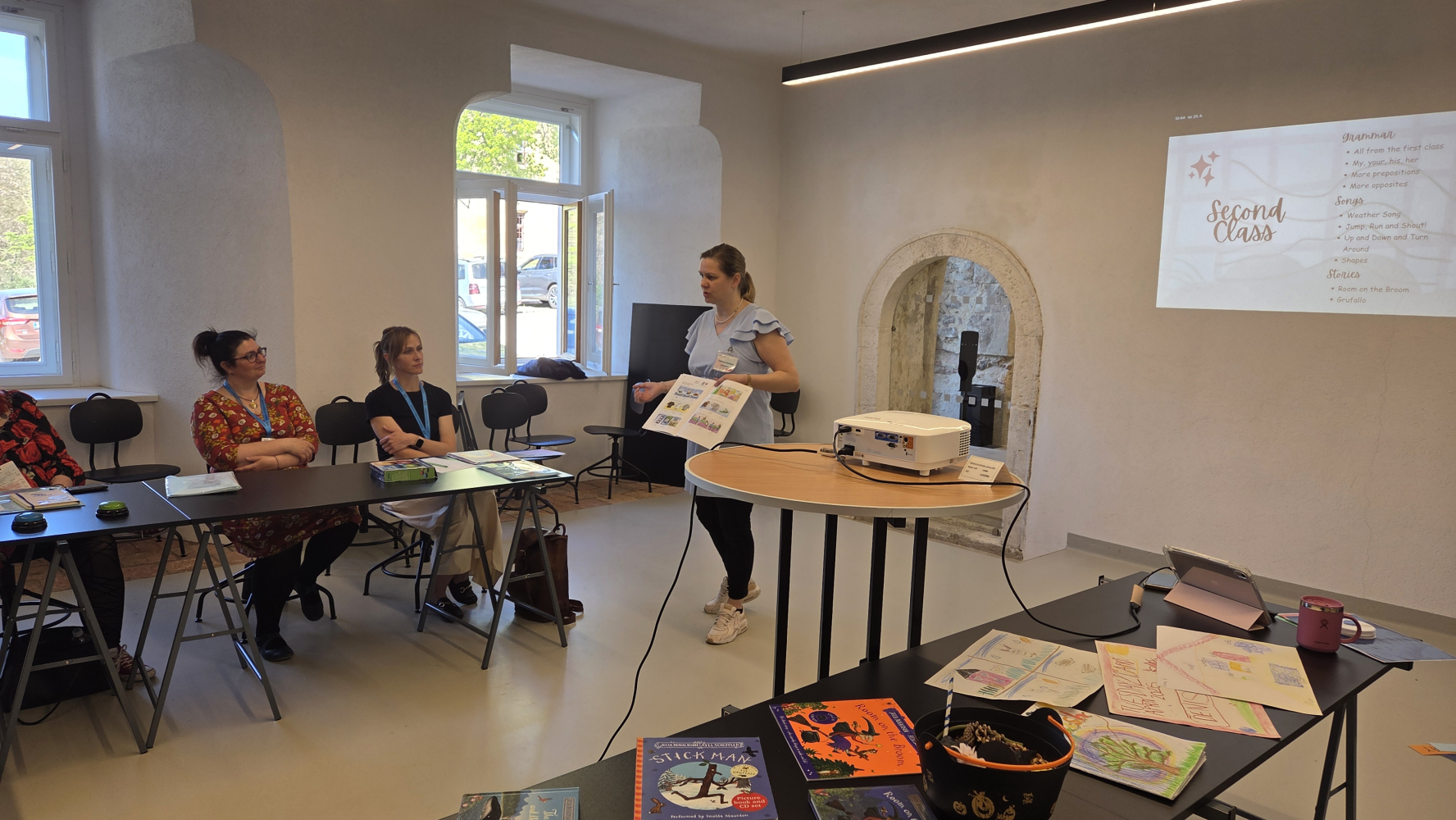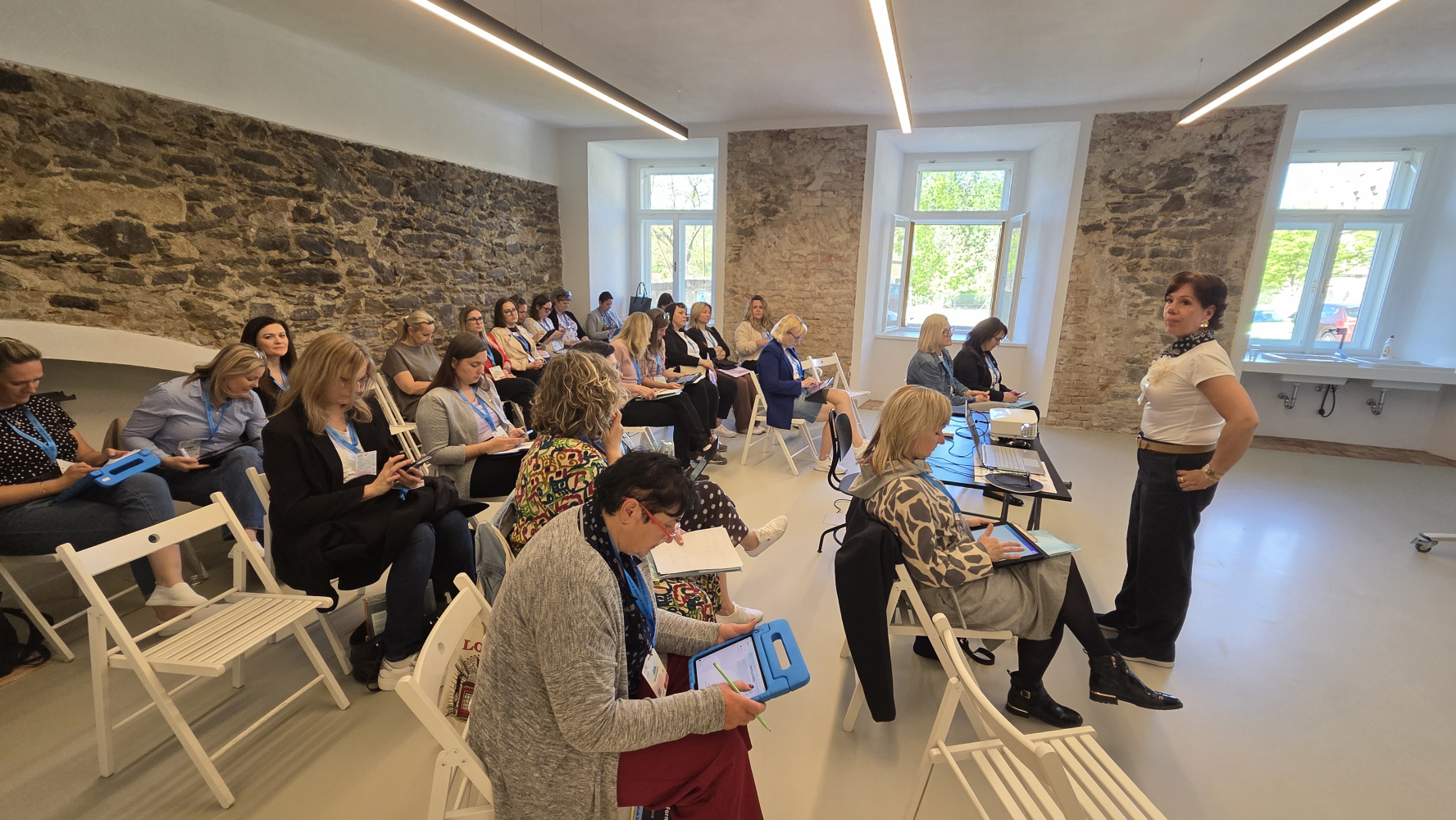 Témata byla velmi široká – od výuky angličtiny a matematiky přes čtenářskou gramotnost až po aktivity zaměřené na vztahy ve třídě nebo kreativní činnosti. Nechyběly ani praktické ukázky práce s grafickým programem Canva, hudební a rytmické aktivity nebo kaligrafie a akvarel. Venku si pak zájemci mohli vyzkoušet netradiční hry využitelné v hodinách tělesné výchovy.