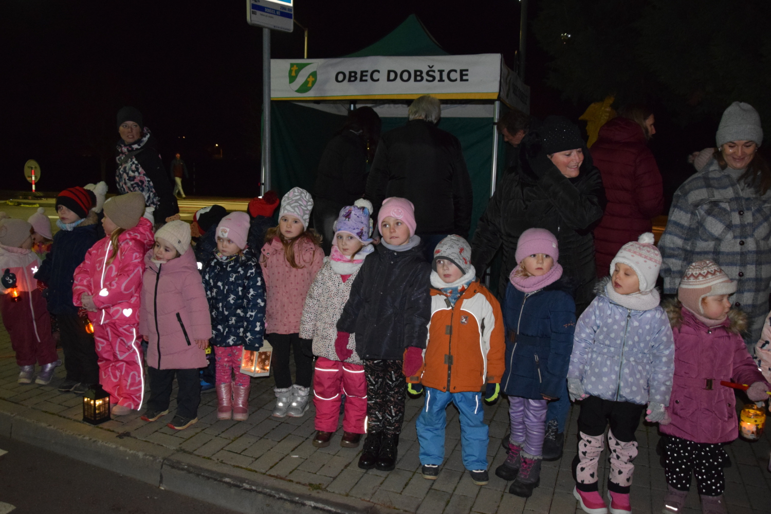 Více než stovka rodičů s dětmi si v pátek nenechala ujít tradiční slavnostní rozsvícení vánočního stromu a adventní výzdoby v Dobšicích. Děti dorazily k obecnímu stromu průvodem od místní základní školy, kde si nesly vlastní rozsvícené lampičky. Poté se přítomným představily s krátkým programem plným říkanek a písniček.