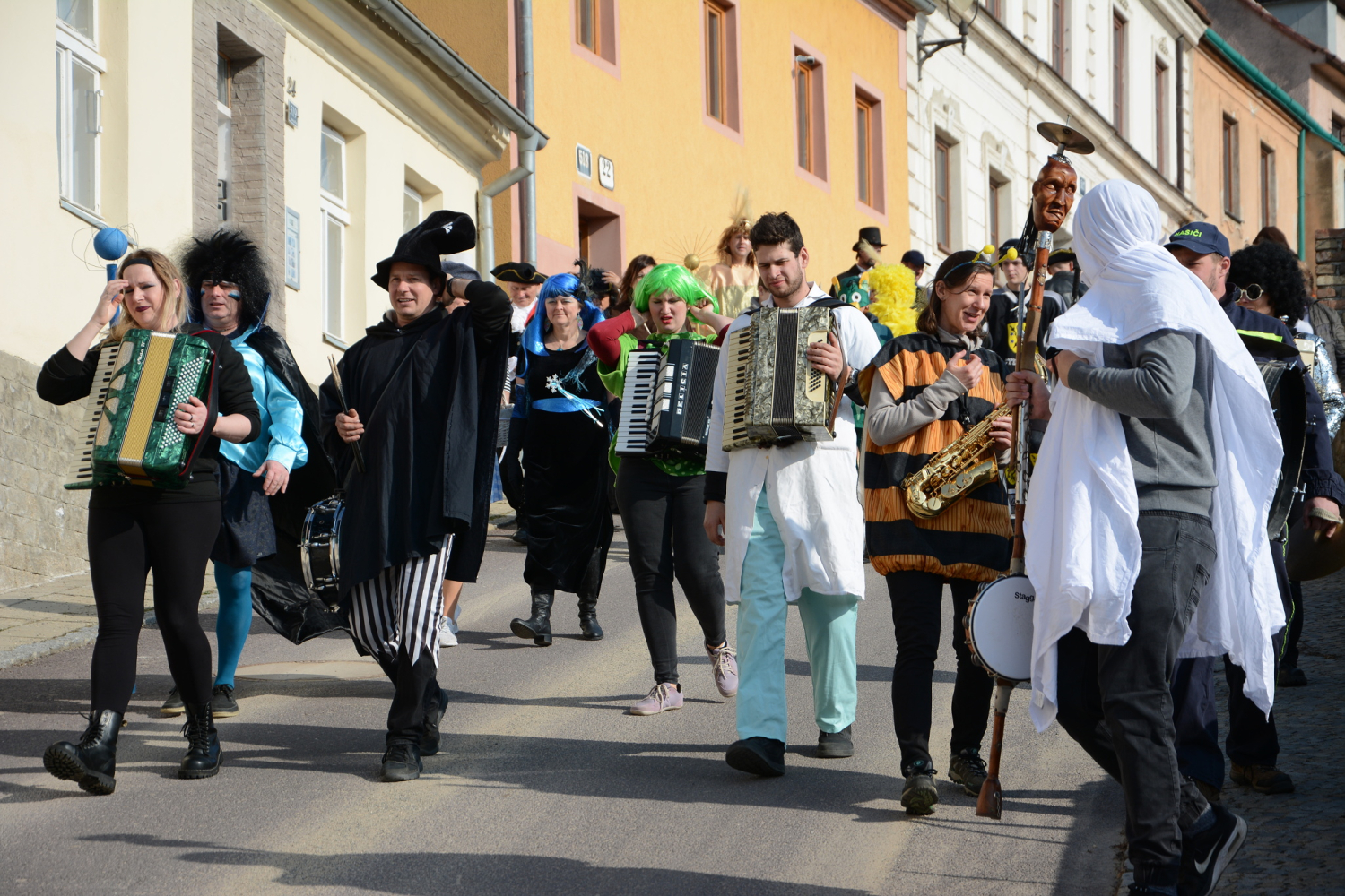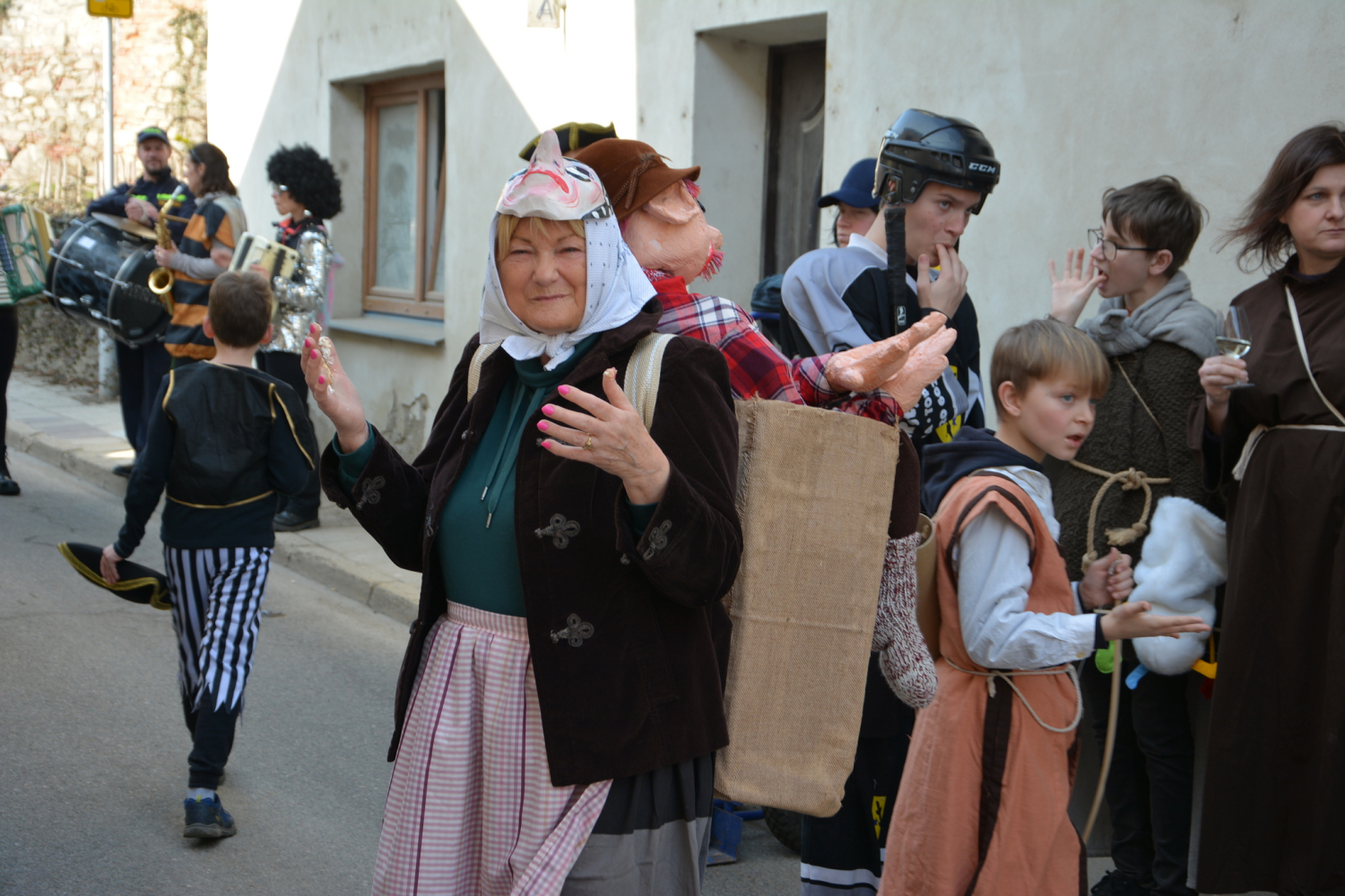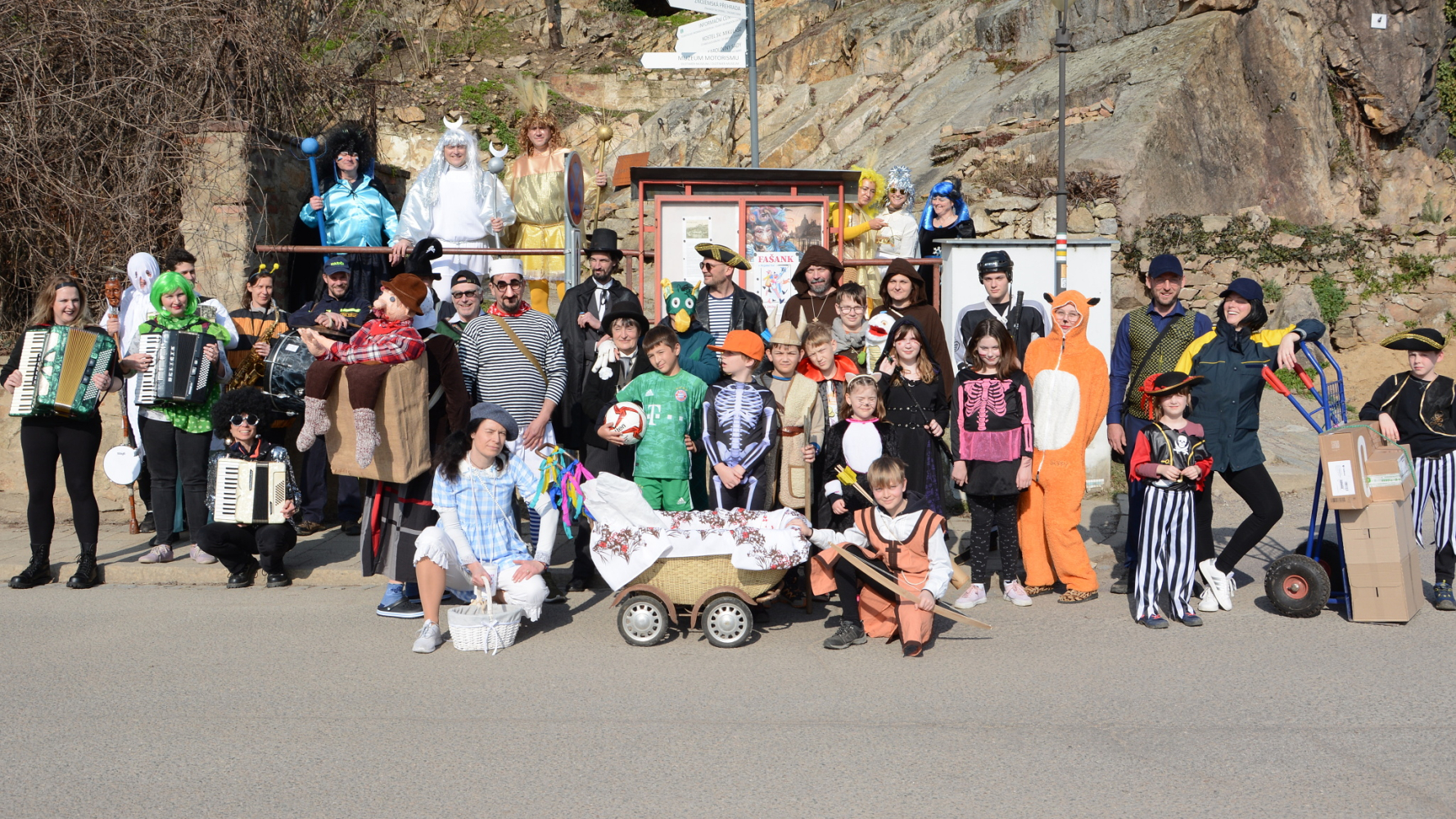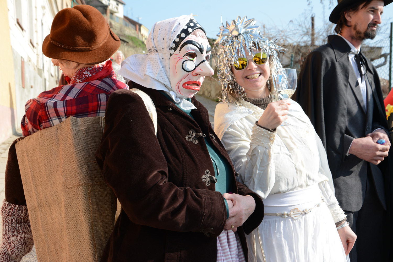 Fašank v Dyjské Vsi – tradiční to části Znojma u řeky Dyje – proběhl předminulou sobotu s rozverným průvodem masek. Nádherné slunečné odpoledne, barevné a nápadité masky, muzika. Průvod procházel kolem toku řeky Dyje, masky měly různorodou podobu od pohádkových postav po fotbalisty a pošťáky.