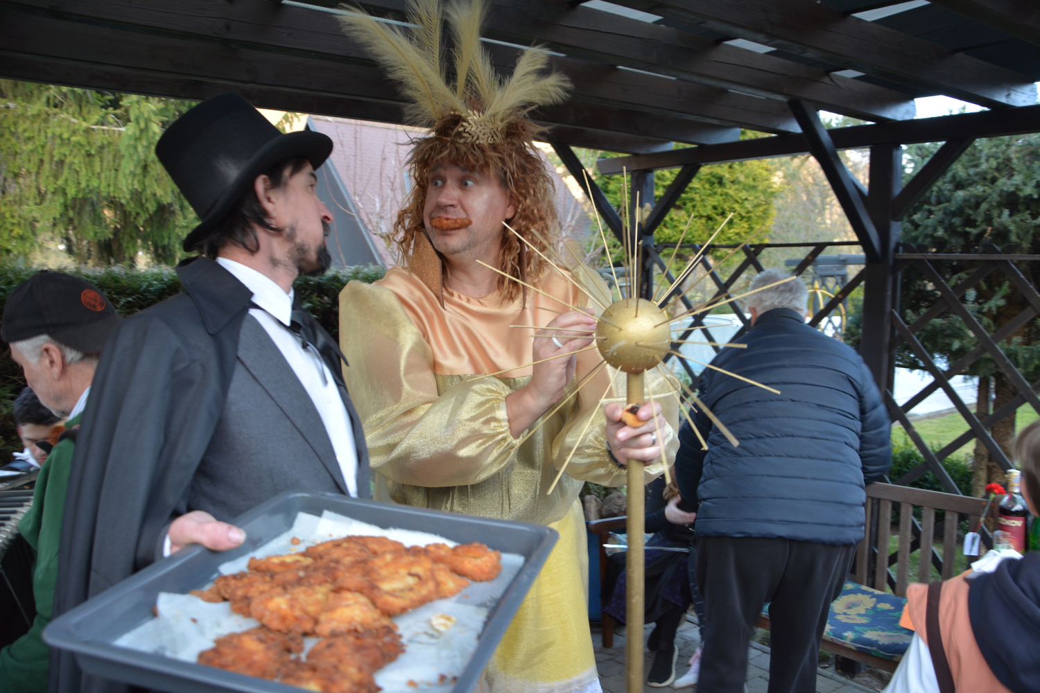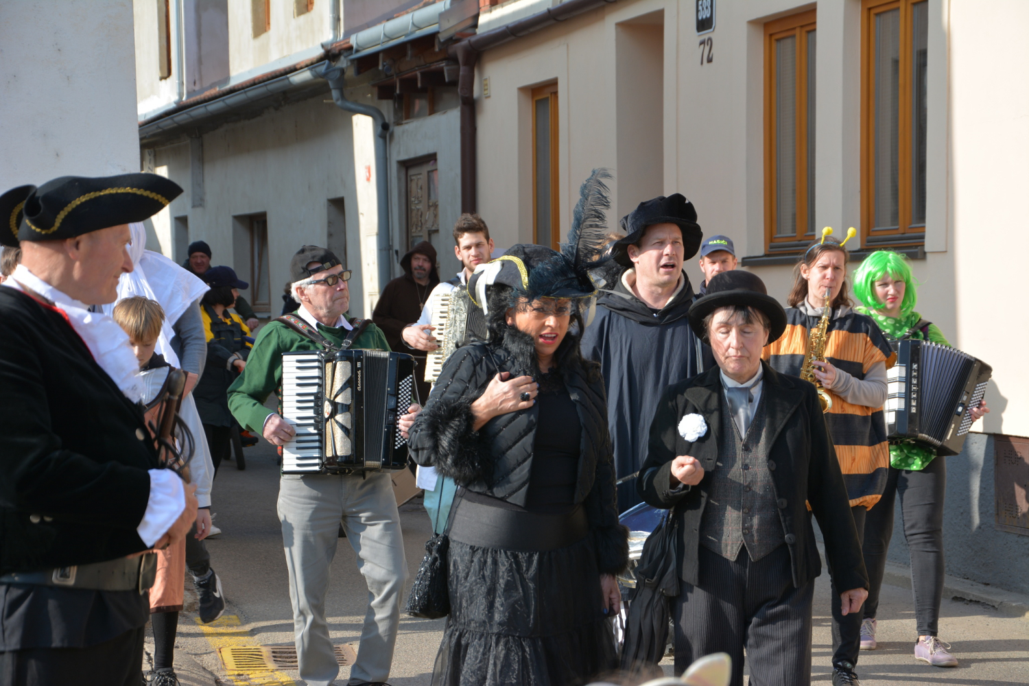 A otevřely se dveře snad všech domů v ulicích, cestou všem hrála živá hudba. Bezmála čtyřicet masek prošlo v Dyjské vsi po ulicích Koželužská, Pod Kraví horou a Mlýnská. Po celou cestu průvodu se zpívalo, hrálo, tančilo i popíjelo, chutnaly se masopustní koblihy, koláče, chlebíčky i jednohubky. A došlo i na karafiát pro ženy, neboť fašank se uskutečnil v předvečer obligátního svátku MDŽ…
