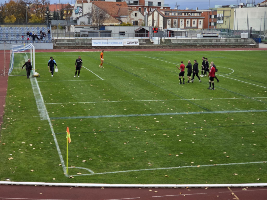 Klub se ještě těsně před výkopem snažil situaci napravit — čáry čistili a dokonce vytrhávali trávu, ale vzhledem k časové tísni už se úprava nedala dokončit. „Rozhodčí řekl, že by se mohlo hrát, jen kdyby byla opravena celá čára. To už by se ale nestihlo,“ dodal Radim Hübner.
