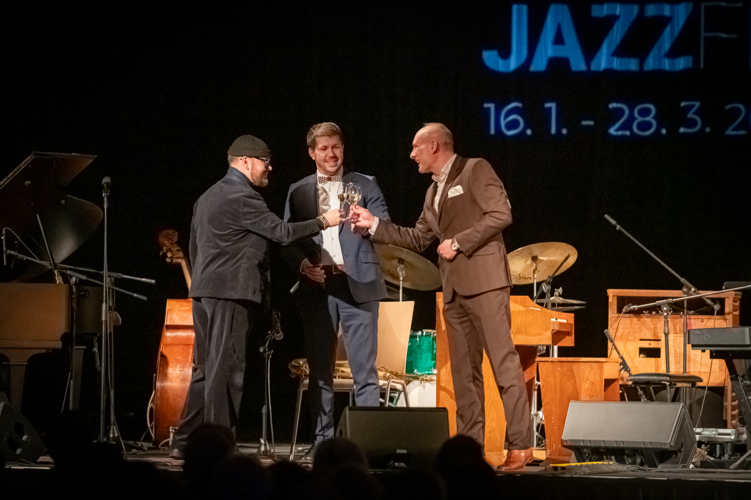 Úvod proto patřil také domácím, znojemskému Big Bangu. Ale ještě před tím prezidentovi JazzFestu a Hudby Znojmo Jiřímu Ludvíkovi. Neobvykle a nečekaně se jeho tvář objevila na promítacím plátně nad jevištěm.