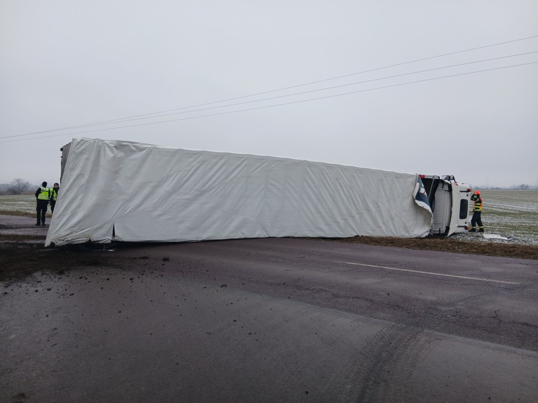 Dnes dopoledne zasahovali hasiči u dopravní nehody kamionu, který se na silnici mezi obcemi Dyje a Tasovice převrátil na bok. Událost se obešla bez zranění, havarované vozidlo však zůstává na komunikaci a provoz je v místě nadále omezen.
