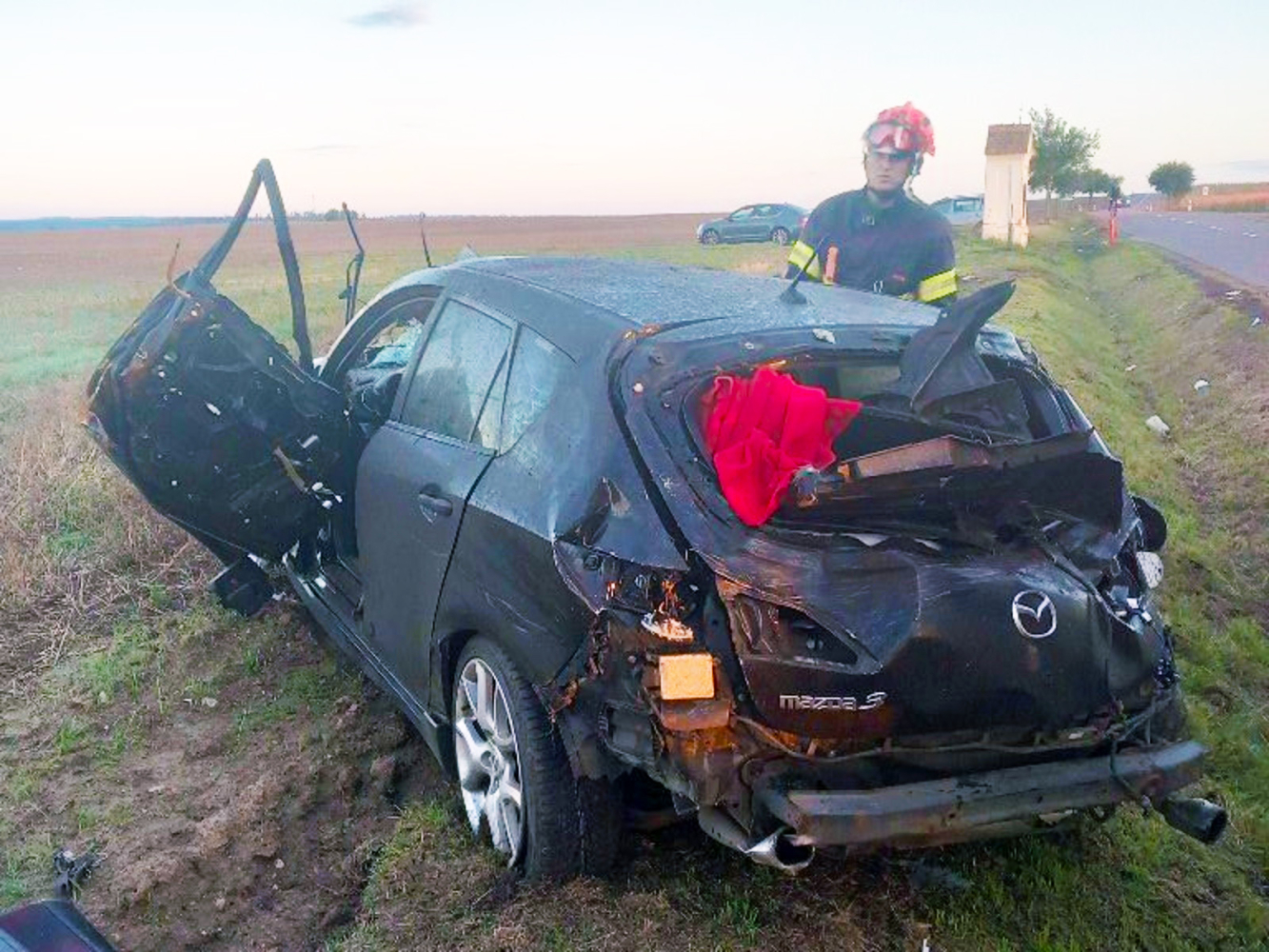 Nehoda tří vozidel u Znojma: Auto se přetočilo přes střechu, jeden zraněný