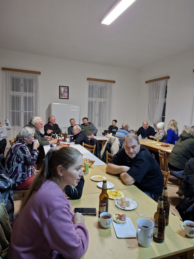 Když jsme se nabažili pohledu na rozsvícený stromeček, odebrali jsme se na do bývalé třídy v budově obecního úřadu. Punč, svařák, čaj, pitíčko pro děti, nějaká ta dobrůtka na stolech. Ale hlavně pocit příslušnosti k naší obci, sousedské debaty a rozpravy, na které není jindy dost času, vzpomínání. Kouzelné byly děti, neustále v pohybu a v dobré náladě.
