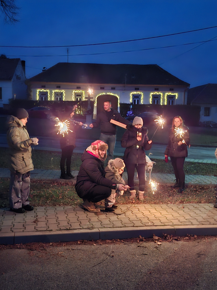 Byla už tma, když pan starosta popřál všem přítomným klidné prožité adventu, svátků vánočních i dobrý nový rok. A že se nás sešlo! Dospělí i děti se radovali z krásně nasvíceného vánočního stromu, který zdobí naši náves a je vidět už z dálky. Letos máme ale stromky dva. Druhý menší nazdobila rodina Houfkova na břehu řeky Jevišovky. A také u místní kapličky svítí světýlko jako vzpomínka na ty, kteří už tu s nejsou s námi.