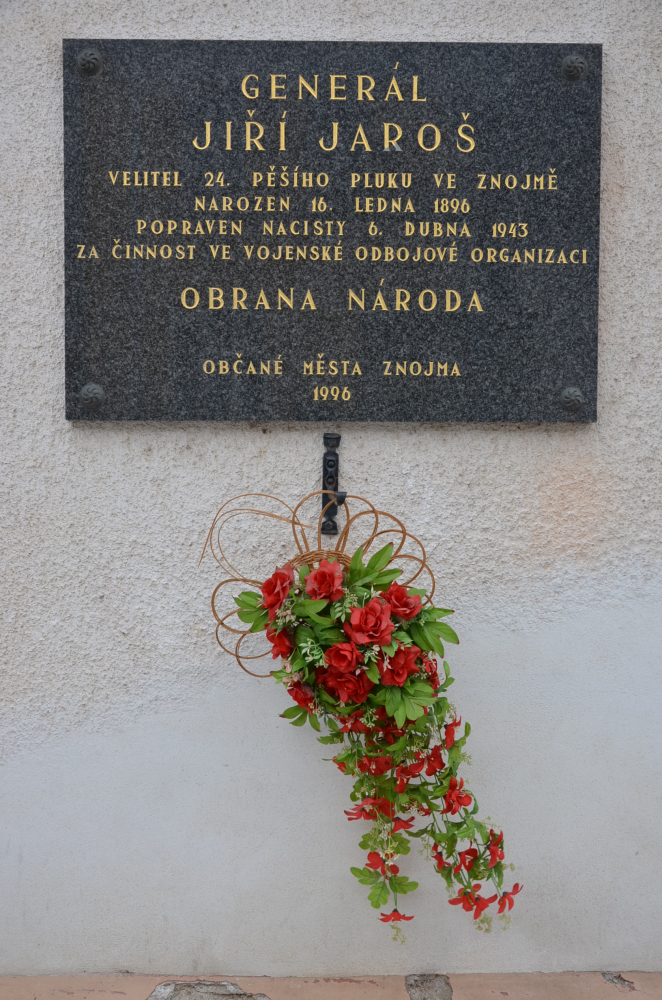 Zítra již tomu bude třicet let, kdy na zdi tehdejších znojemských Žižkových kasáren přibyla deska připomínající generála Jiřího Jaroše. Muže, jenž od září 1936 velel 24. pěšímu pluku ve Znojmě a věren přísaze Československé republice se nesmířil s nacistickou okupací. Za činnost ve vojenské odbojové organizaci Obrana národa ho 6. dubna 1943 popravili nacisté gilotinou. V květnu 1998 udělilo Město Znojmo Jiřímu Jarošovi čestné občanství.