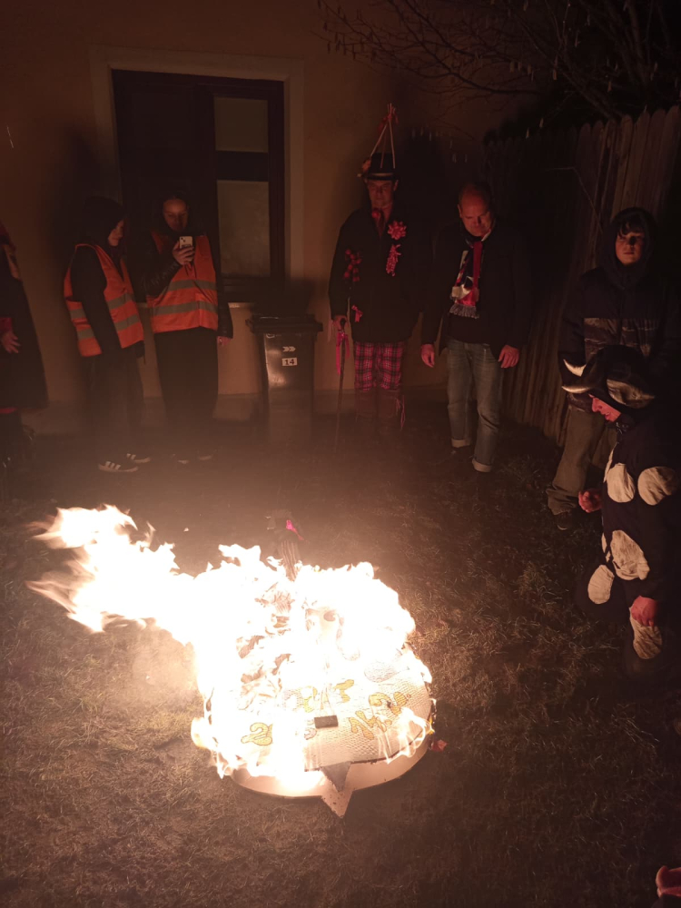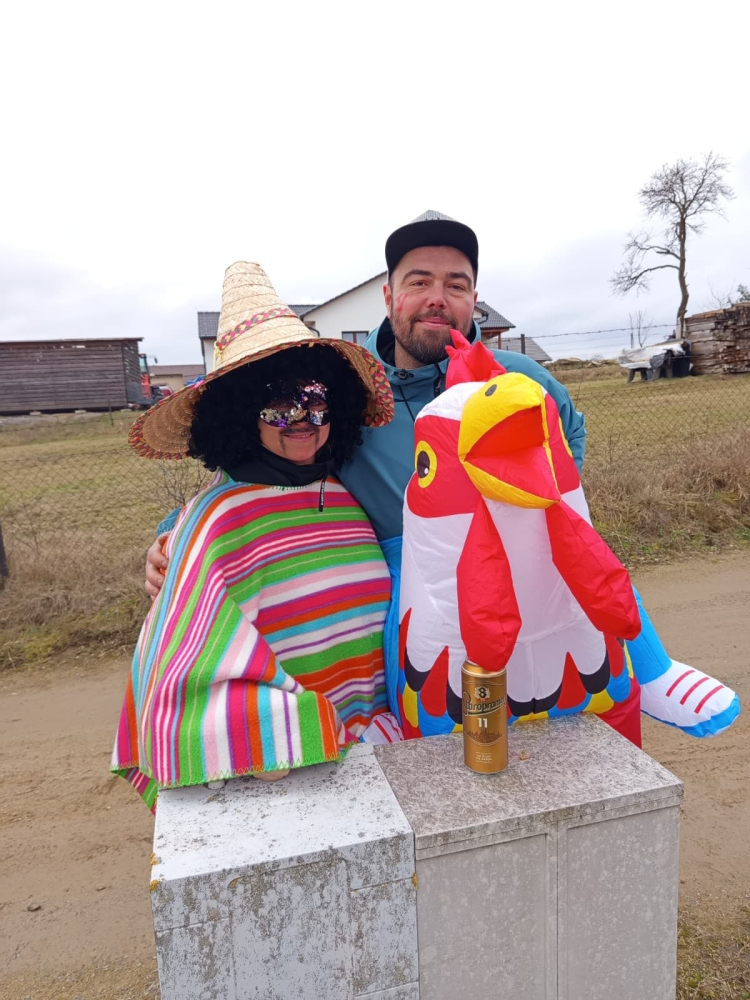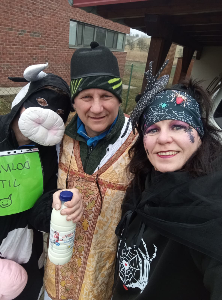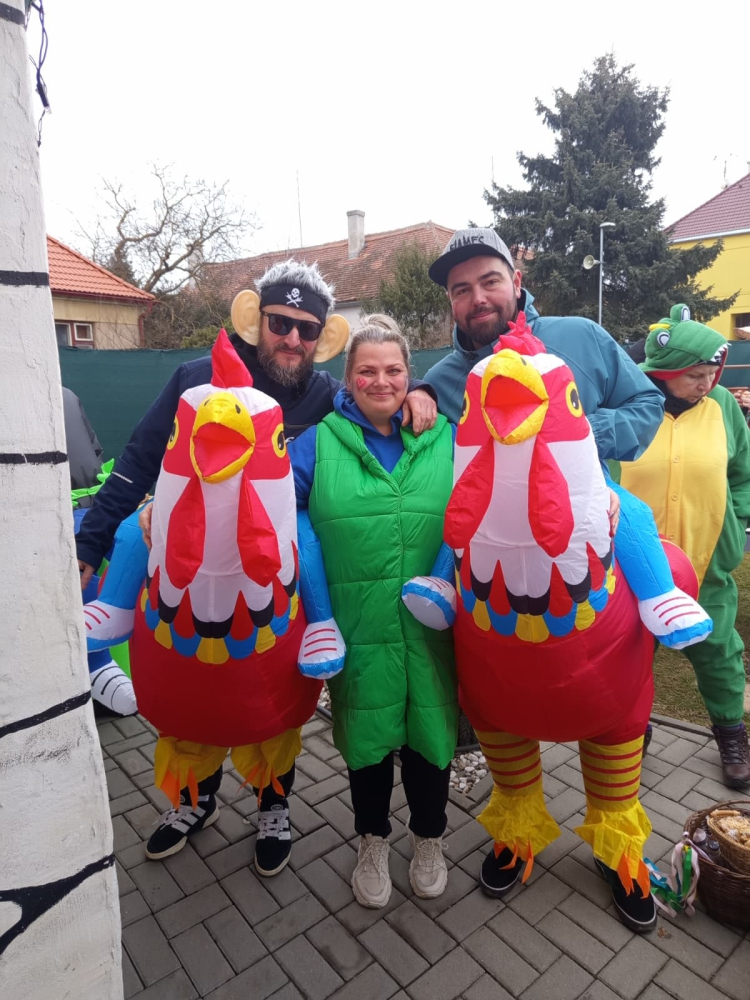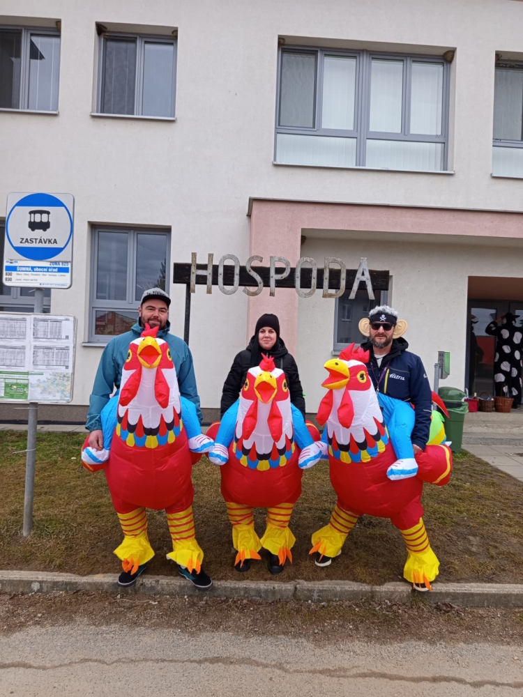 Pestrobarevný masopustní průvod poctivě zastavil u každého stavení, které bylo požehnáno a každému, kdo otevřel, byl věnován pavouček pro štěstí. Koláčky a koblížky mizely pod rukama hospodyněk, hospodáři nestačili nalévat tekuté vitamíny. Prostě bylo veselo a dobře. K večeru se všechny masky a spoluobčané sešli na masopustní zábavě, kde nejdříve pohřbili a spálili Basu Šumenskou Masopustovou, a tím zapomněli na všechny obecní hříchy napáchané v předchozím roce. Kdo netančil, tak stál u baru nebo tlachal u ohně, kde se rožnil již tradiční vyhlášený GreGyros. Všem, kdo přišli, otevřeli nebo zastavili - děkujeme!