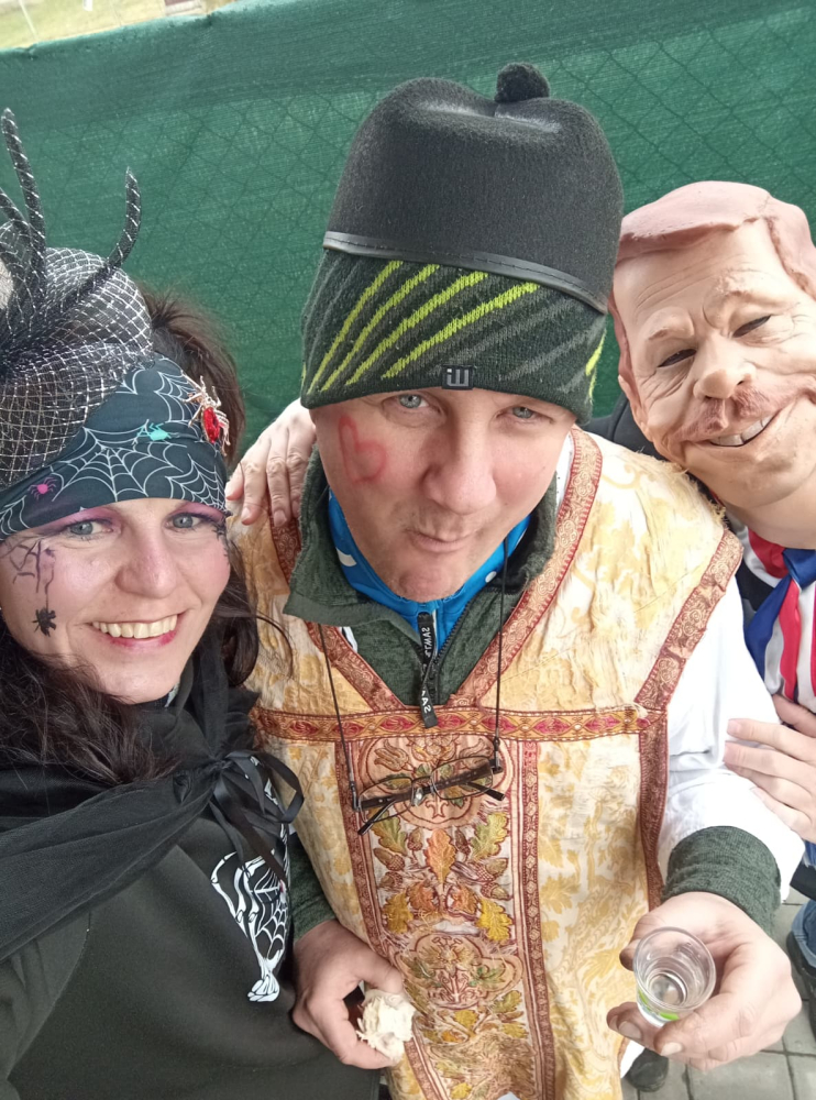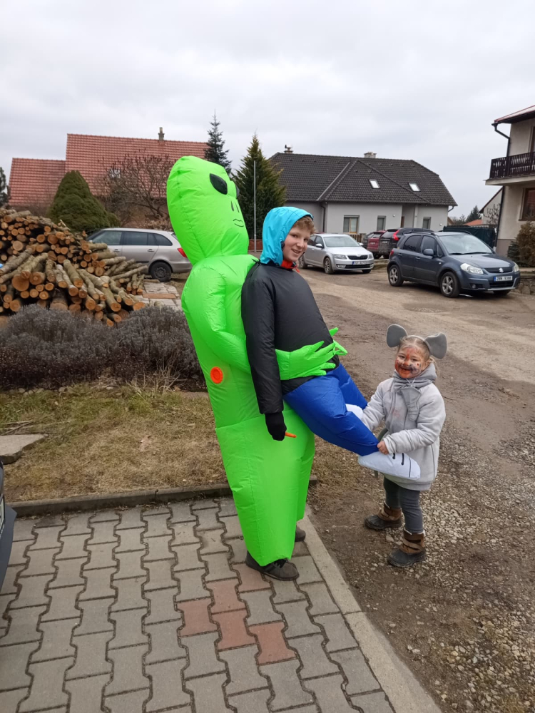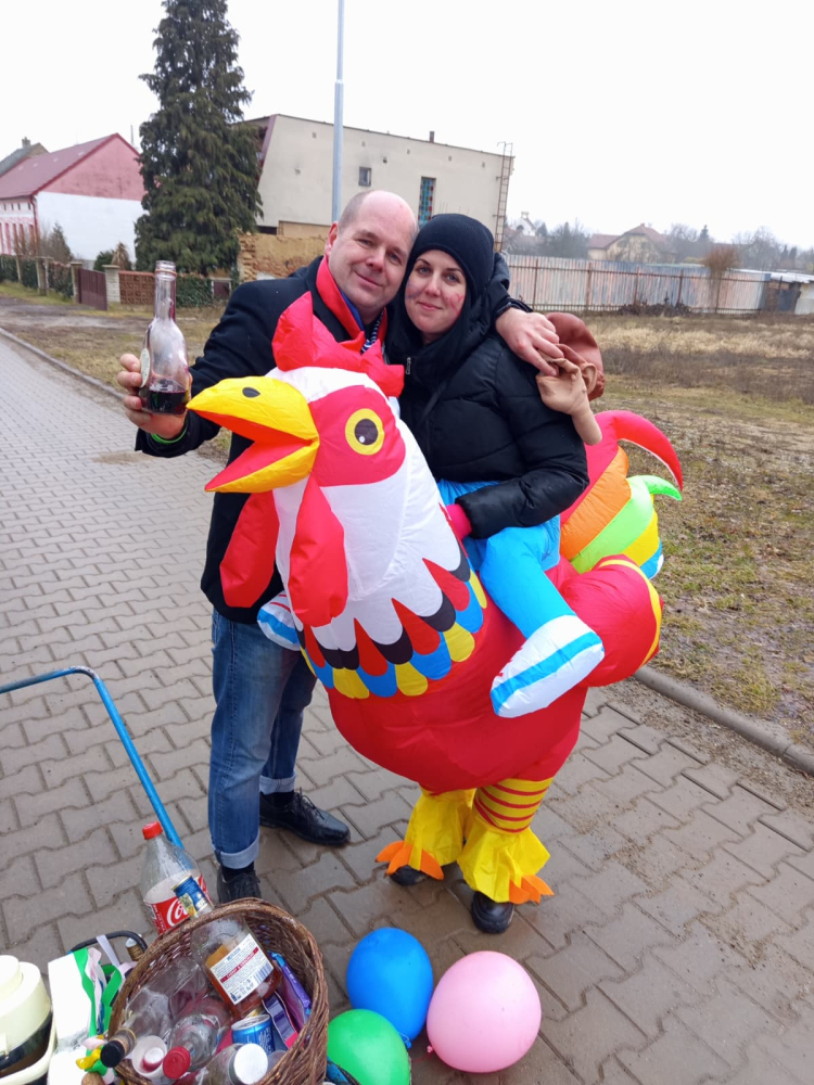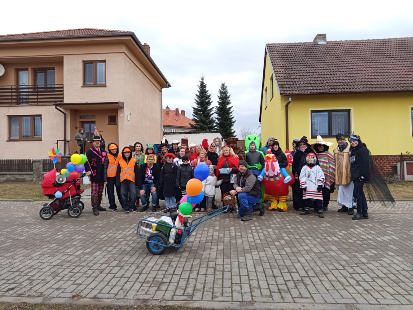 Pestrobarevný masopustní průvod poctivě zastavil u každého stavení, které bylo požehnáno a každému, kdo otevřel, byl věnován pavouček pro štěstí. Koláčky a koblížky mizely pod rukama hospodyněk, hospodáři nestačili nalévat tekuté vitamíny. Prostě bylo veselo a dobře. K večeru se všechny masky a spoluobčané sešli na masopustní zábavě, kde nejdříve pohřbili a spálili Basu Šumenskou Masopustovou, a tím zapomněli na všechny obecní hříchy napáchané v předchozím roce. Kdo netančil, tak stál u baru nebo tlachal u ohně, kde se rožnil již tradiční vyhlášený GreGyros. Všem, kdo přišli, otevřeli nebo zastavili - děkujeme!