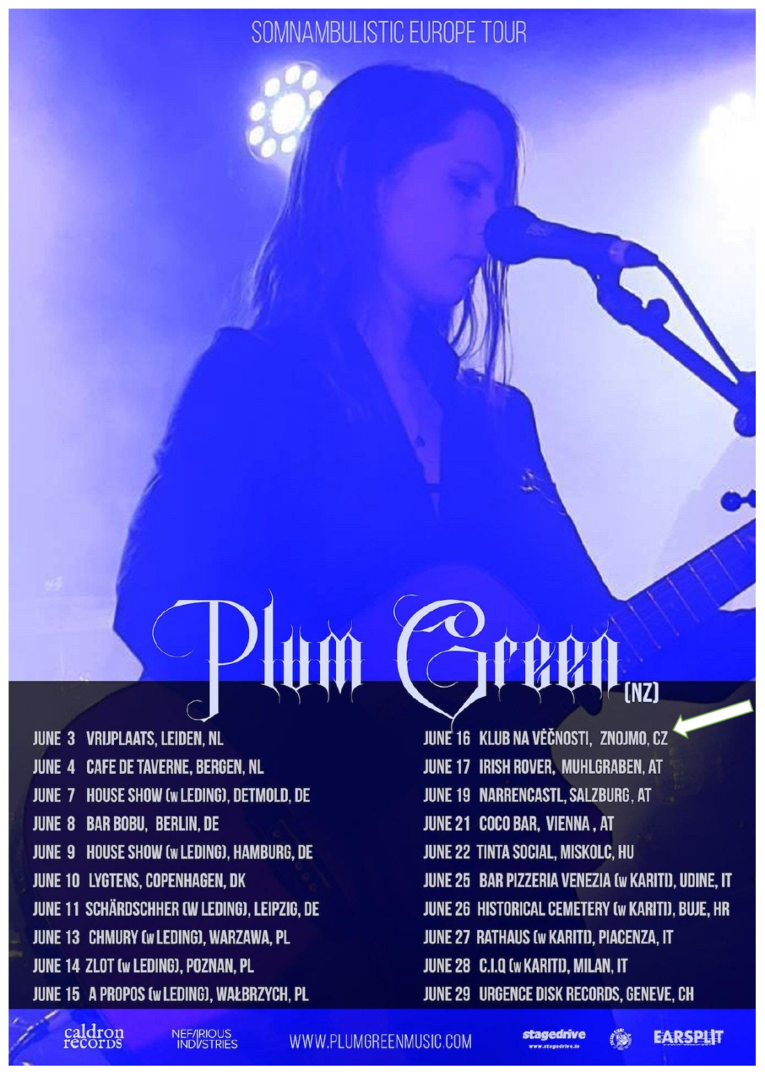 Na konci roku 2019 Plum Green obdrželi grant City of Melbourne Arts za nahrání alba Somnambulistic. Jedná se o 9 skladbové koncepční album temných ukolébavek. Folková kytara a temné zadumané zvukové plochy, klasické smyčcové aranže a varhany melbournské radnice poskytují kulisu okouzlujícímu vokálu. „Kráčíme mezi temnými rockovými liniemi (channeling ducha Jima Morrisona poetika a Patti Smith) a tajemnými lidovými baladami. Na Věčnosti se představí již tento pátek 16. června ve 20.30 hodin.