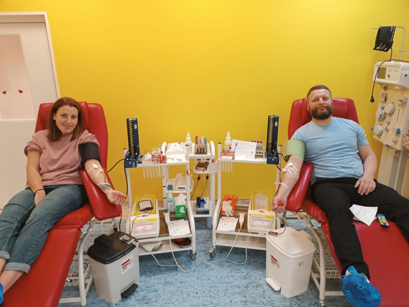 Hematologicko-transfuzní oddělení přivítalo šest párů, které přišly darovat krev společně. Každý dárce si z akce odnesl kromě dobrého pocitu také drobný dárek od regionálních partnerů, jako poděkování za jejich ochotu a odvahu.