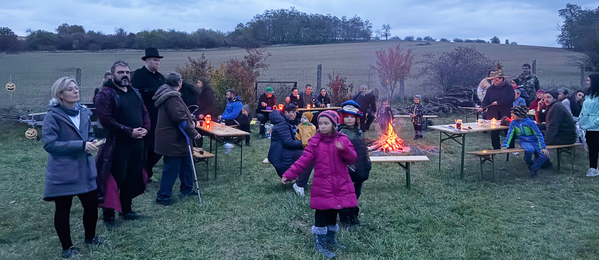 Večer pak pokračoval s vůní podzimu a pečených špekáčků, u líbivých tónů kytary přítomní zpívali a povídali až do pozdního večera.