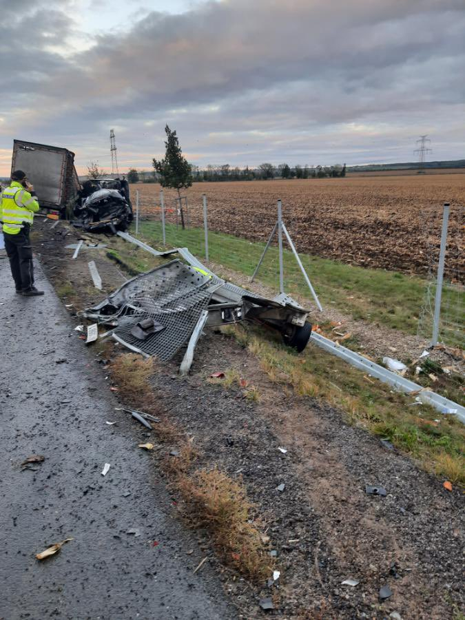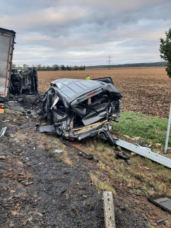 V úterý 7. října v ranních hodinách došlo na silnici I/53 mezi dyjským a bantickým kruhovým objezdem k vážné dopravní nehodě, po níž vypukl požár. Nákladní vůz tam narazil do osobního auta s přívěsem, které stálo na kraji vozovky ve směru na Znojmo.