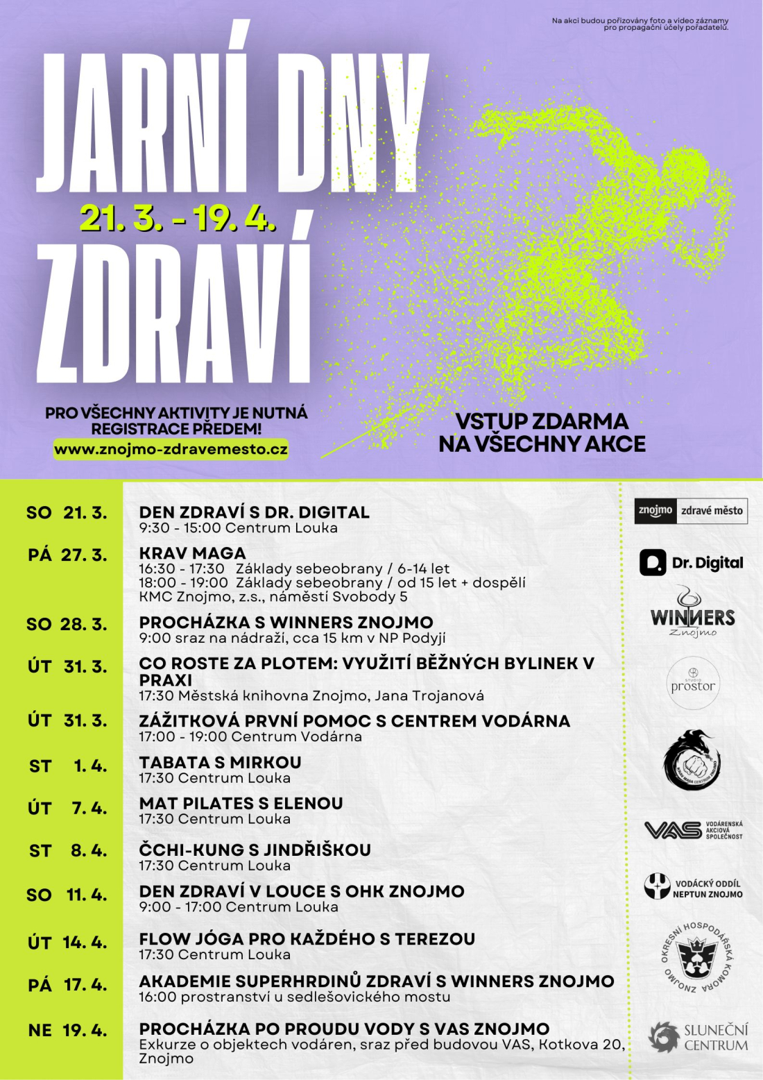 V sobotu 21. března se v Centru Louka uskuteční Den zdraví Znojmo s Dr. Digital. Akce zahájí letošní Jarní Dny zdraví, které pořádá město Znojmo v rámci projektu Znojmo Zdravé město. Den zdraví s Dr. Digital nabídne celodenní program zaměřený na prevenci, osvětu i praktické zdravotní dovednosti.