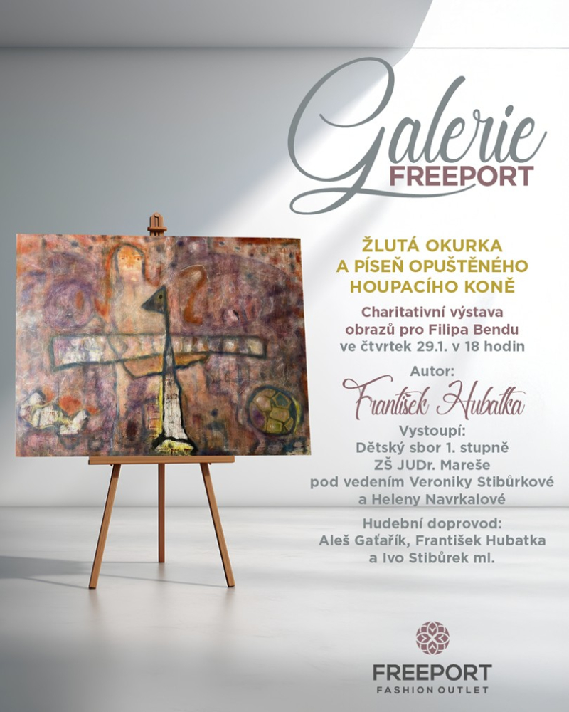 Možnost vystavování v galerii Freeport mě zaujalo tím, že je spojeno s charitativní akcí. Na Filipa Bendu mě upozornila sestřenice Veronika Stibůrková. Zná ho ze školy, ve které pracuje. Expozice je prodejní a polovina z výtěžku prodeje obrazů bude věnována právě Filipovi.