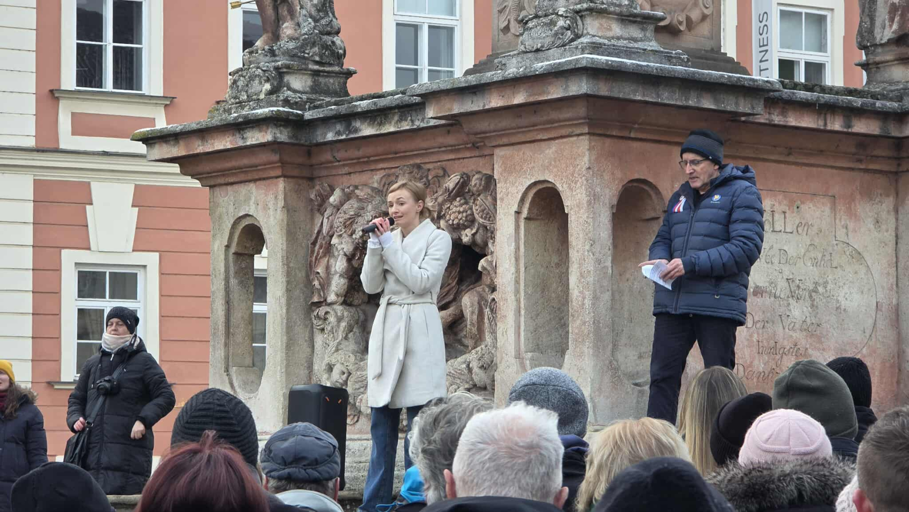 Mysleli, že přijde tak třicet, maximálně padesát lidí. Víc ne. Vždyť navíc mrzlo a rtuť teploměru atakovala minus čtyři. Nakonec se jich na Masarykově náměstí ve Znojmě u kašny k celorepublikové akci Stojíme za prezidentem připojilo necelých pět set. Pro velký ohlas nyní organizátoři znojemské části uvažují objednat autobusy do Prahy, kde má 21. března proběhnout na ikonické Letné společné shromáždění v rámci celé výzvy.