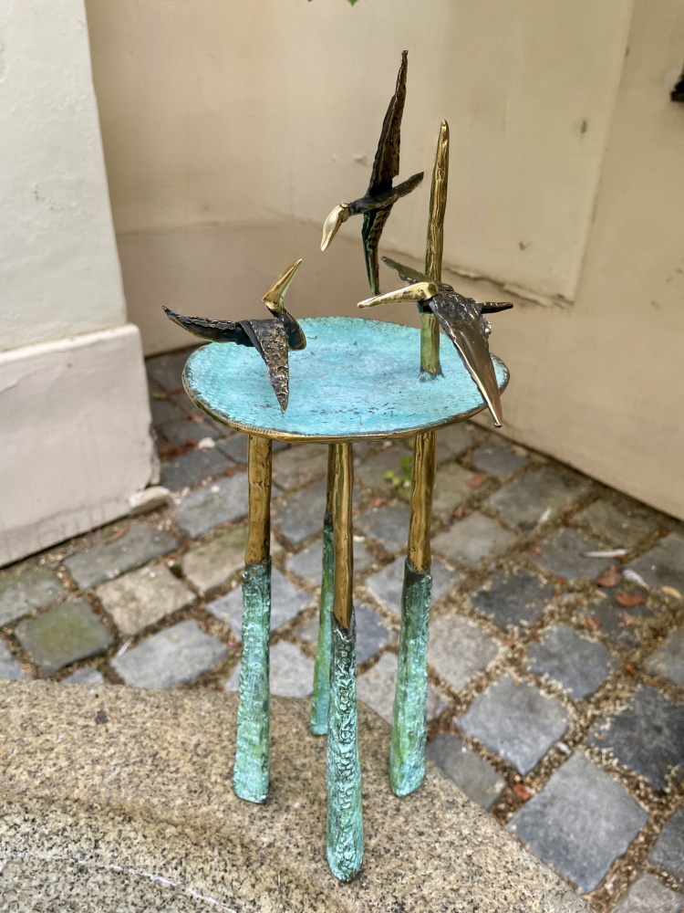 Nová kašna představuje originální umělecké dílo, které bude vytvořeno z patinovaného bronzu se strukturovaným povrchem. Čtyři stély s rostlinnými motivy vynášejí plochou mísu s přetékající vodou, nad níž levitují kinetické plastiky ptáků, které se budou pohybovat podle poryvů větru.